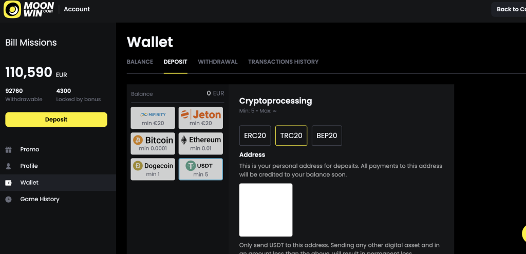 Using these options, you can be sure that all your payments will reach your Moon Win bankroll. All you need is to carefully specify the data of a particular payment option.