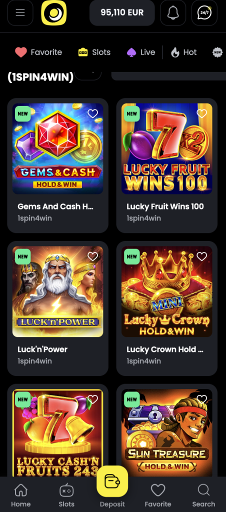 All the games featured at MoonWin are sorted into numerous sections, which is done for your convenience when searching for a particular title. Among them there are Slots, Live, Instant Win, Bonus Buy, and others. Choose one of them according to the game you are looking for, and the search process won’t take you long.